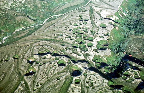I Jämtlands- och Härjedalsfjällen spelade smältvattnet vid isavsmältningen en mycket stor roll för de landformer som bildades. Stora issjöar dämdes upp som när de tömdes kunde ge djupa klippdalar (kanjons) på kort tid. Evagraven i Härjedalen är en sådan. Den bildades när Ljunganissjön sänktes med ett avlopp över Flatruet. Min då 10-årige son Jonas som skala till vänster.